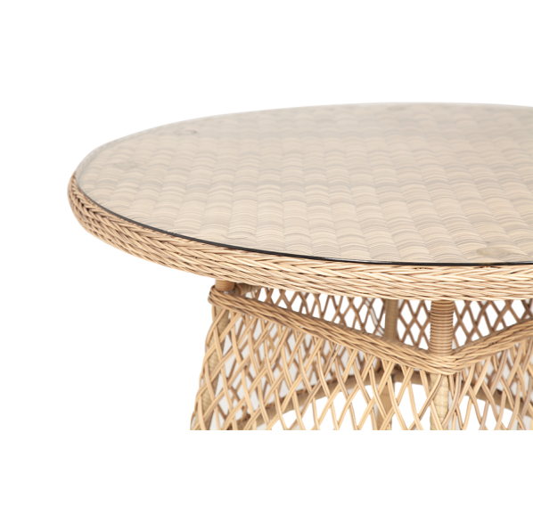 Столешница покрыта прочным стеклом, толщиной 5 мм. Благодаря высокопрочным материалам, обеденный стол очень практичный и подходит для всесезонного использования даже на улице.