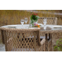 Каркас изготовлен из прочного и очень легкого алюминия. Вручную оплетен синтетическим ротангом натурального соломенного оттенка.