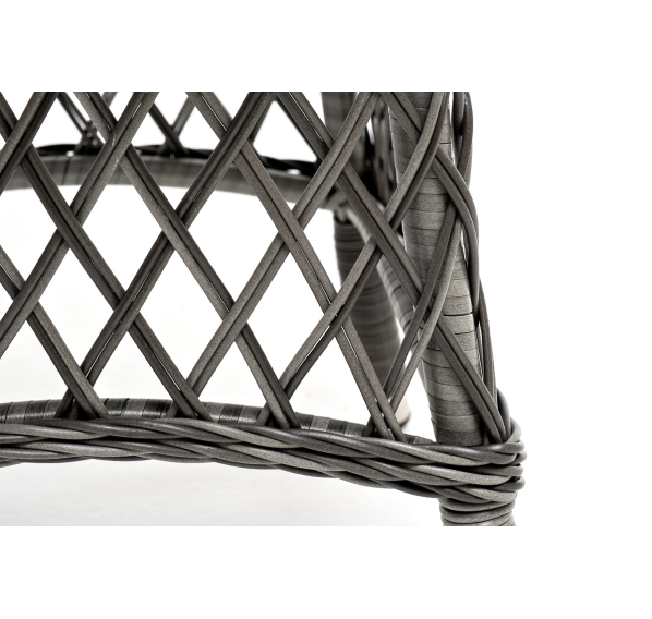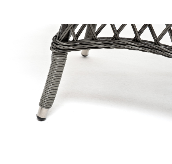 Каркас изготовлен из прочного и очень легкого алюминия. Вручную оплетен синтетическим ротангом натурального графитового оттенка.