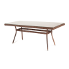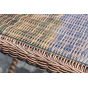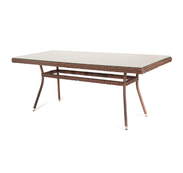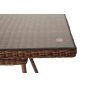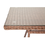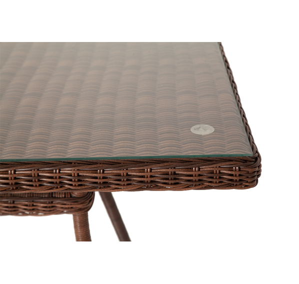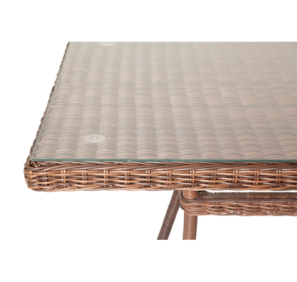 Каркас произведен из прочного алюминия, оплетка которого, выполнена вручную круглым ротангом коричневого цвета. Поверхность защищает стеклянная столешница, толщиной 5 мм.