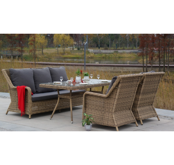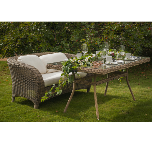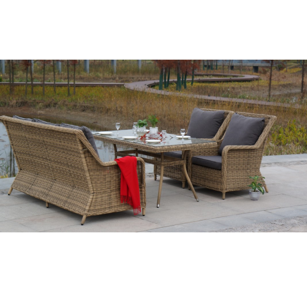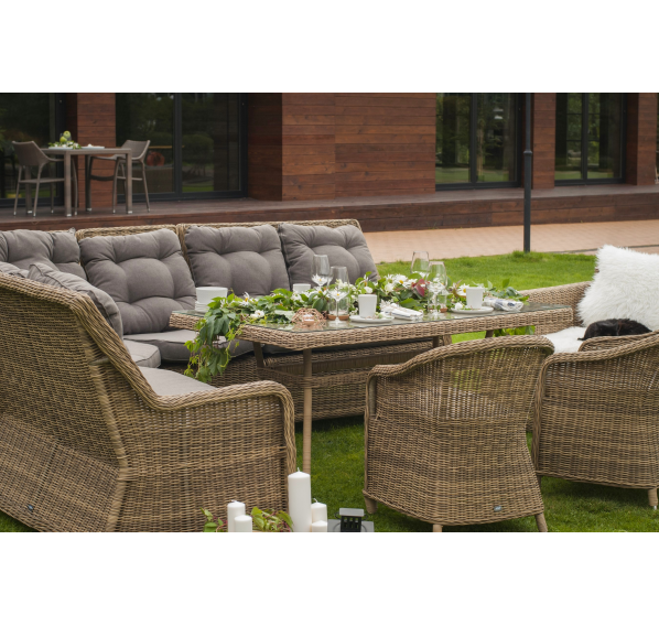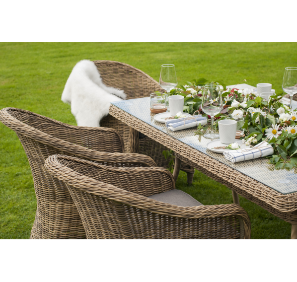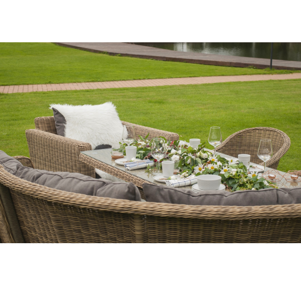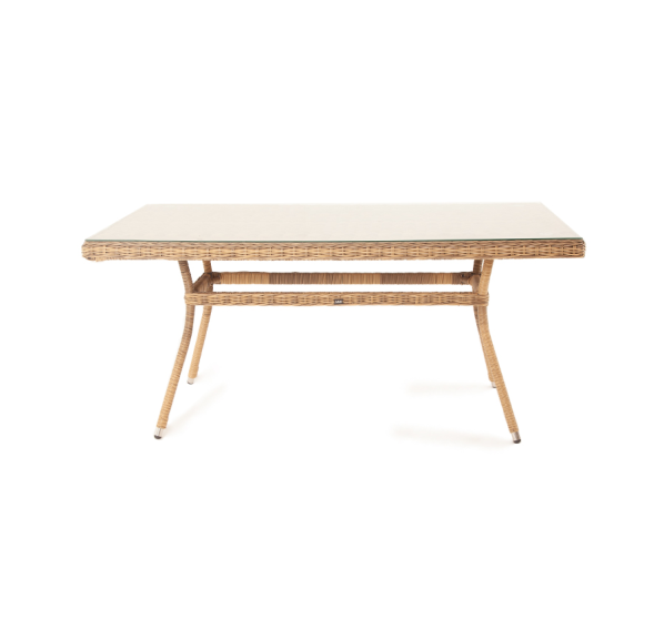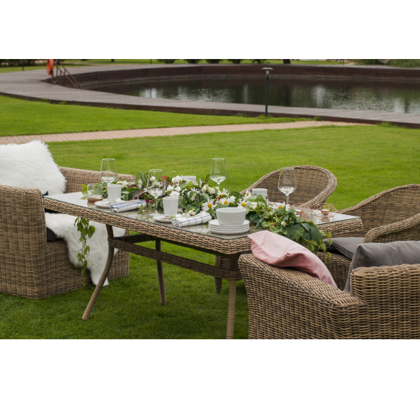 Размеры плетеного стола: 1600×900×750 мм. Рассчитан на 6 персон.