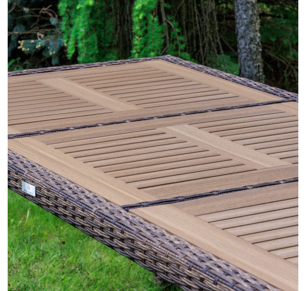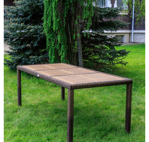 Материал стола — искусственный ротанг (ручного плетения)