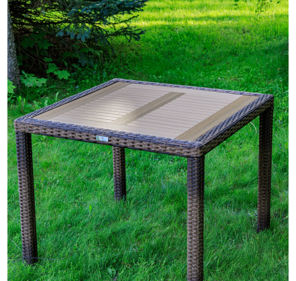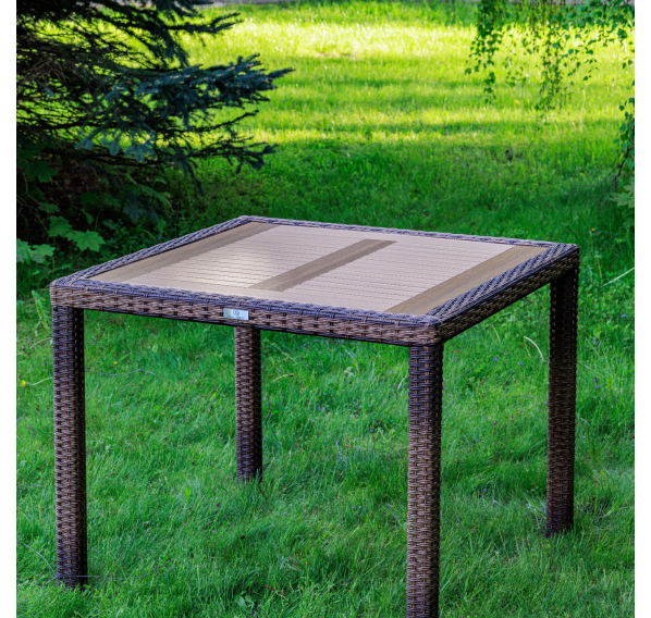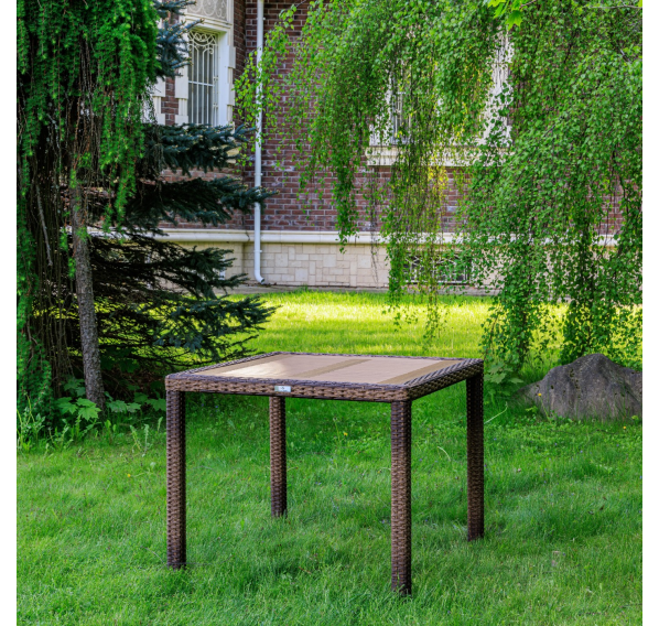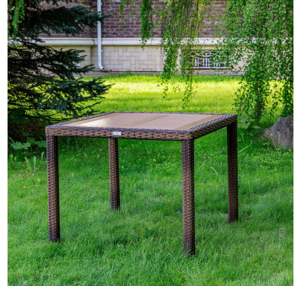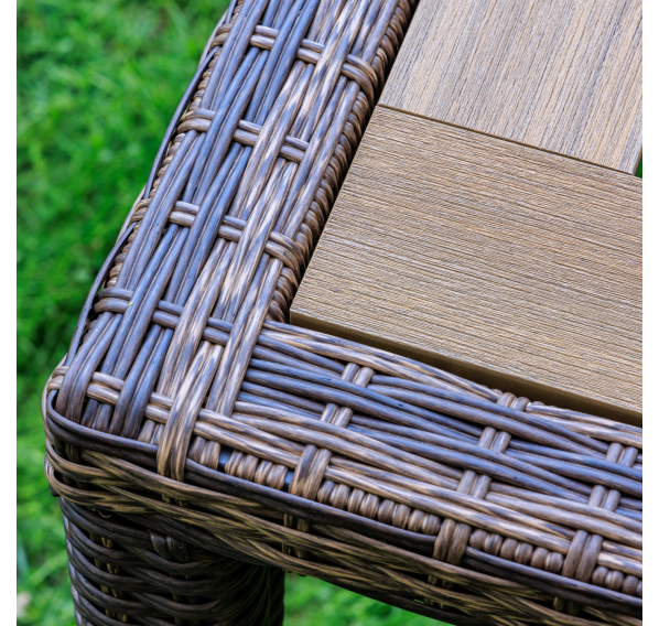 Материал стола — искусственный ротанг (ручного плетения)