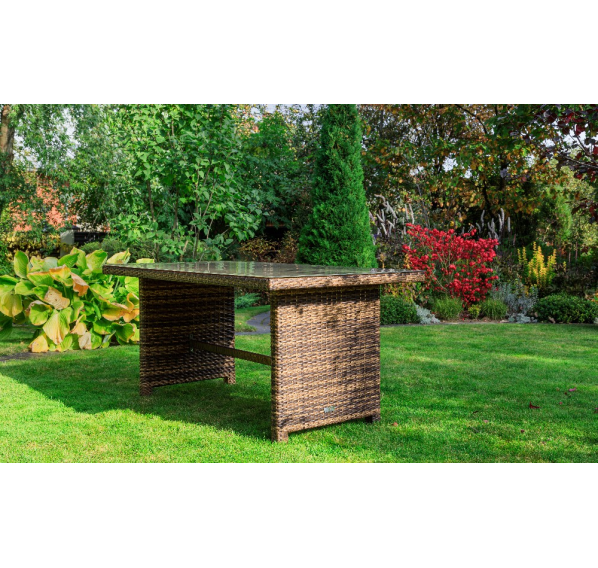 Обеденный стол FIONA — прекрасное решение не только для ежедневных семейных трапез на свежем воздухе, но и праздничных застолий в больших компаниях! Вместительный и устойчивый он рассчитан на шесть человек. Сдержанный современный дизайн и использование нейтральных коричневых оттенков будет гармонично смотреться в любом окружении.