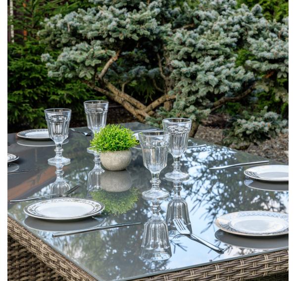 Обеденный стол FIONA — прекрасное решение не только для ежедневных семейных трапез на свежем воздухе, но и праздничных застолий в больших компаниях! Вместительный и устойчивый он рассчитан на шесть человек. Сдержанный современный дизайн и использование нейтральных серых оттенков будет гармонично смотреться в любом окружении.