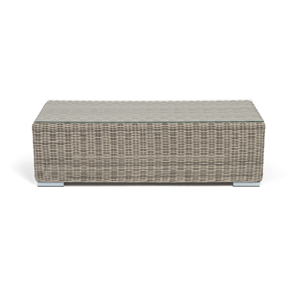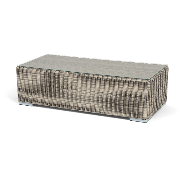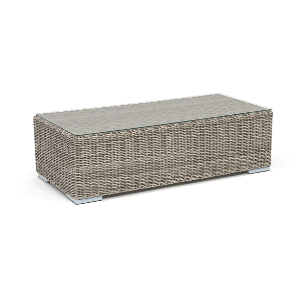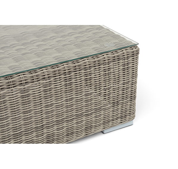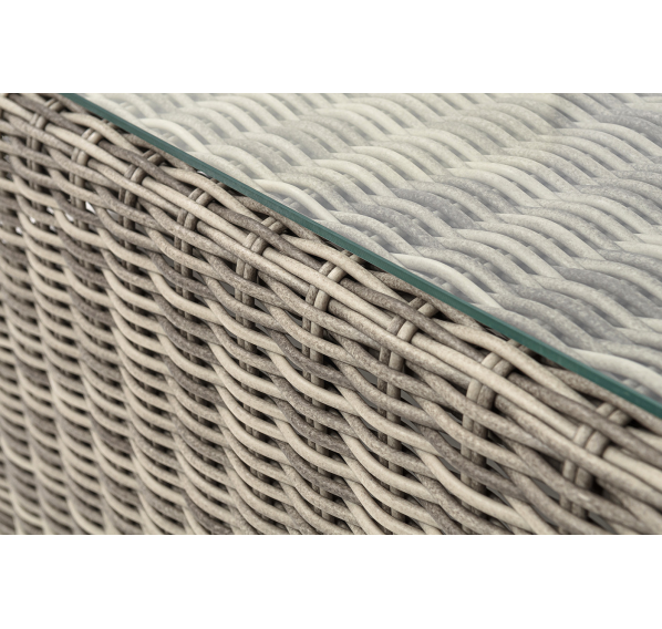 Каркас столика изготовлен из алюминия, вручную оплетенного круглым искусственным ротангом.