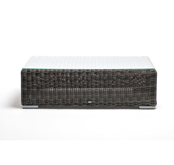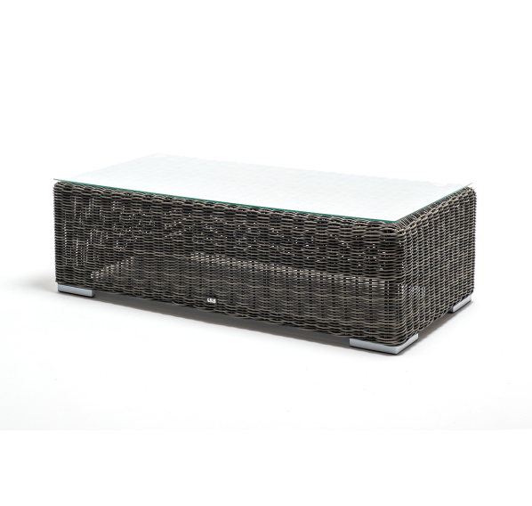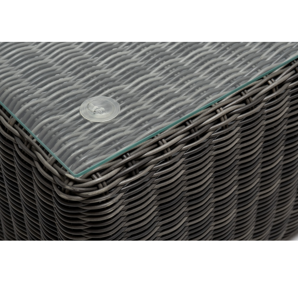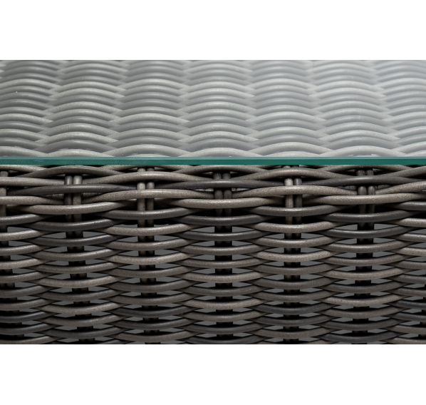 Каркас столика изготовлен из алюминия, вручную оплетенного круглым искусственным ротангом.