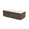 Плетеный столик представлен в коричневом цвете.