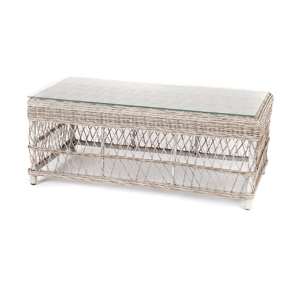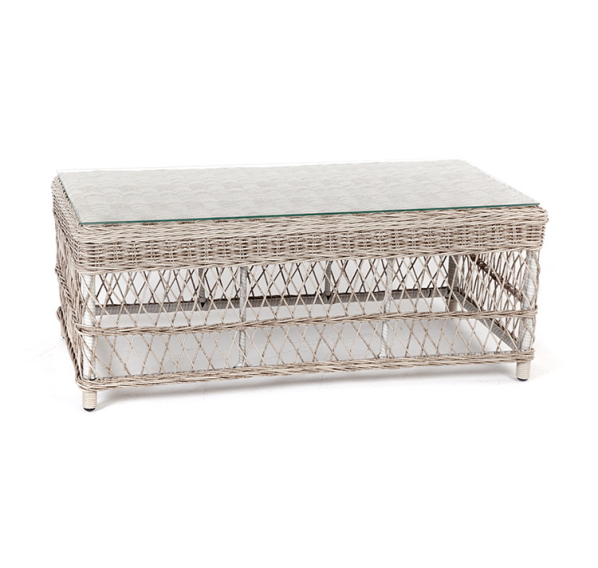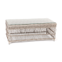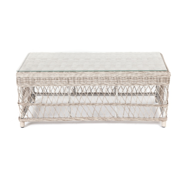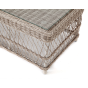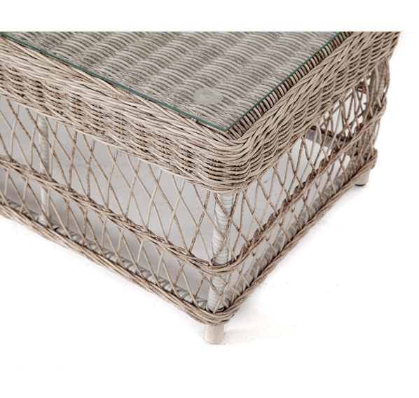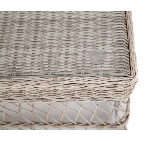 Каркас столика изготовлен из алюминия, вручную оплетенного круглым искусственным ротангом.