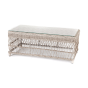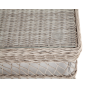 Плетеный столик представлен в бежевом оттенке.