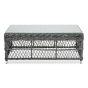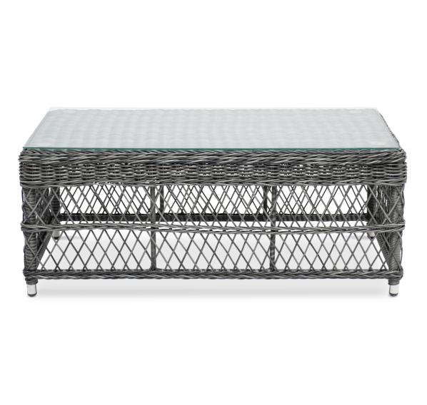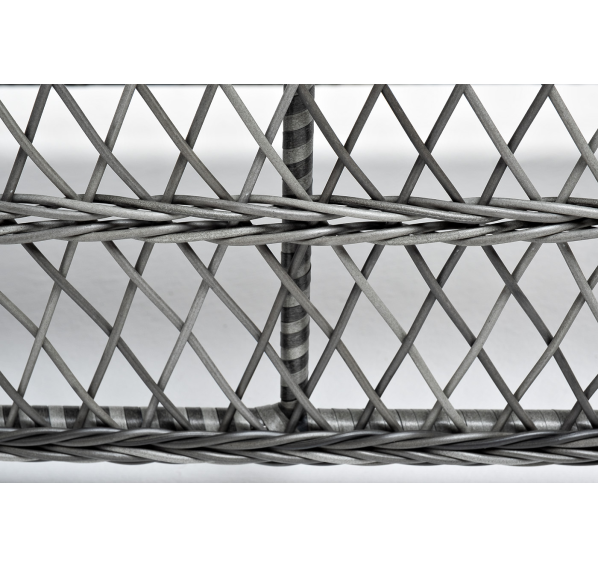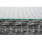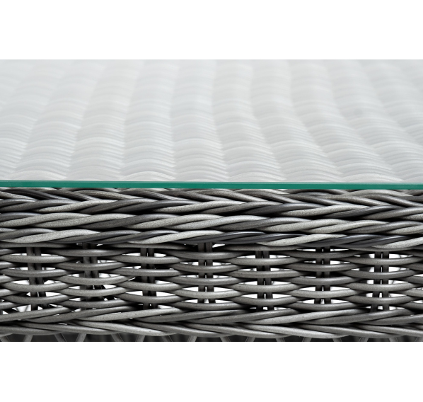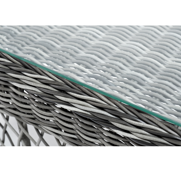 Каркас столика изготовлен из алюминия, вручную оплетенного круглым искусственным ротангом.