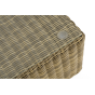 Размер модели – 950×950×350 мм. Ее каркас сделан из высокопрочного алюминия, который оплетен искусственным ротангом с помощью ручного круглого плетения. Столик представлен в соломенном цвете.