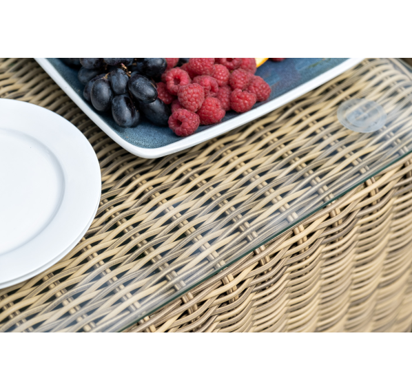 Модель оснащена прочным каркасом, изготовленным из алюминия. В качестве столешницы используется ударопрочное закаленное стекло толщиной 5 мм.