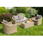 Журнальный столик из круглого искусственного ротанга «Кон Панна» соломенного цвета, подходит для эксплуатации при различных погодных условиях.