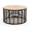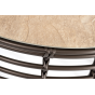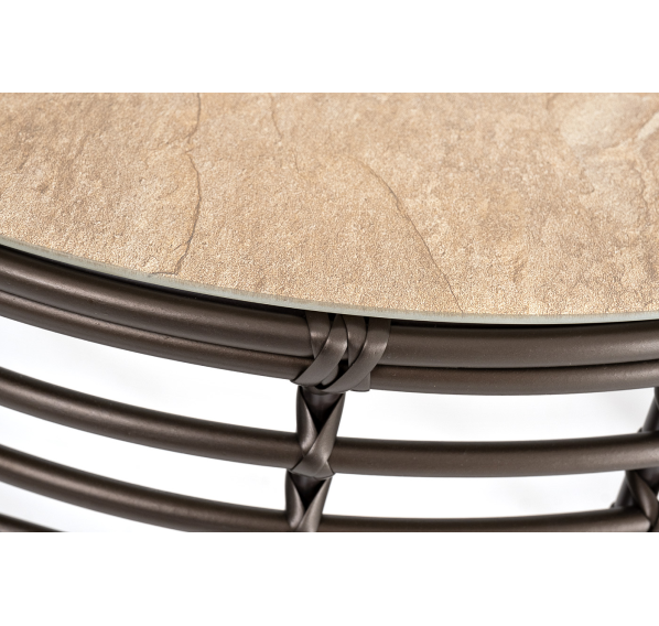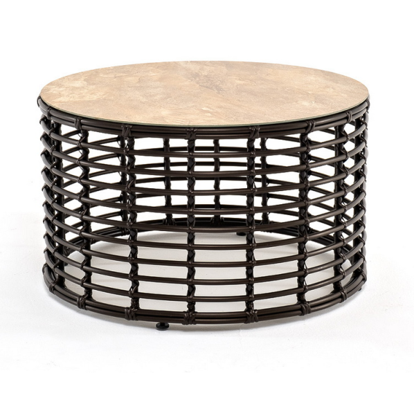 Каркас столика изготовлен из алюминия, вручную оплетенного круглым искусственным ротангом.