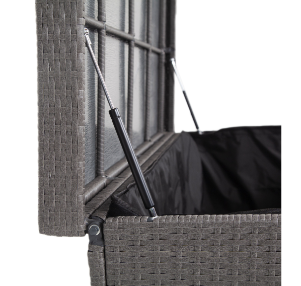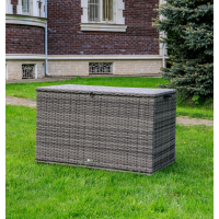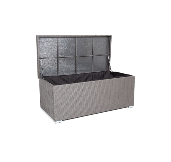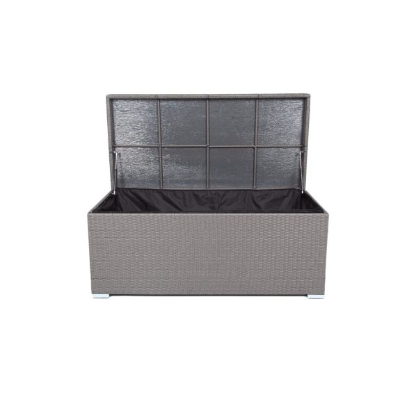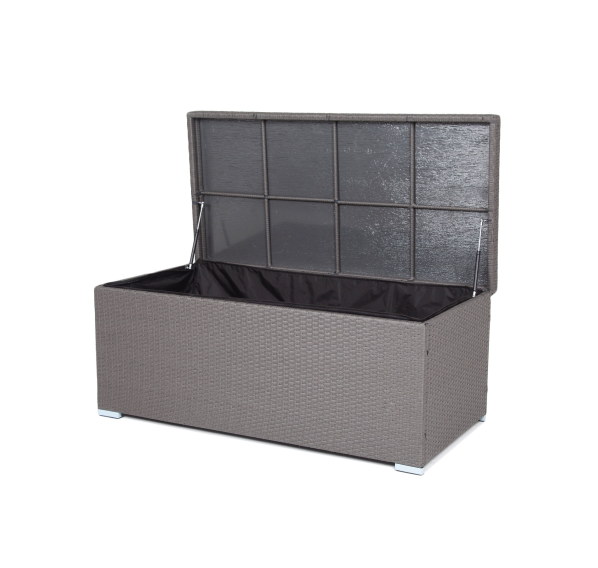 «Порту» вместительный сундук из плоского искусственного ротанга в цвете "графит". В основе - алюминиевый каркас.