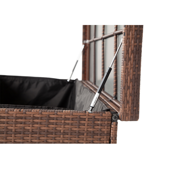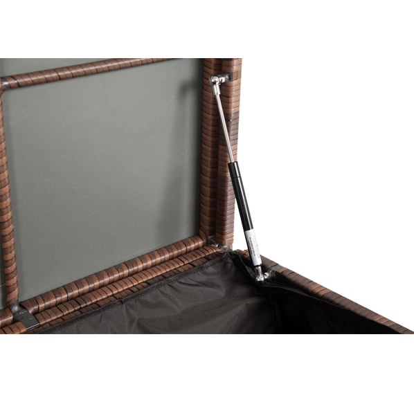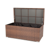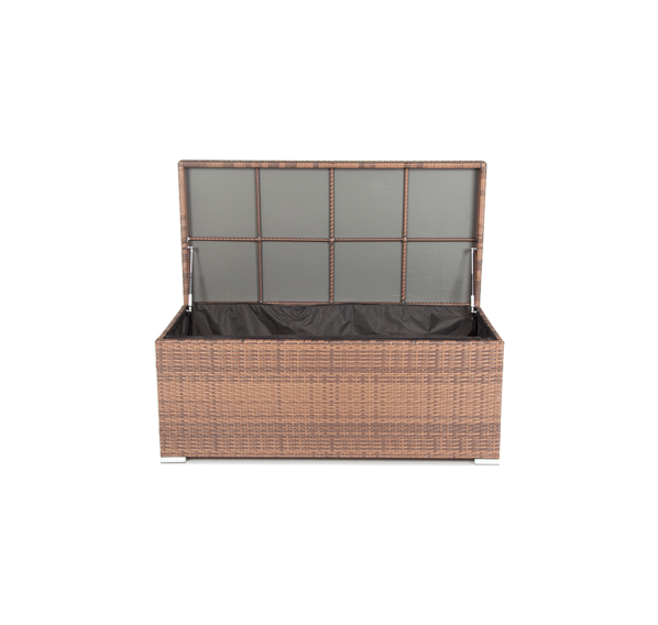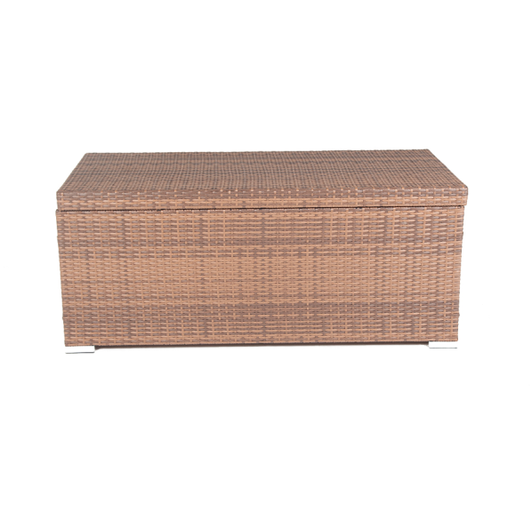 «Порту» вместительный сундук из плоского искусственного ротанга коричневого оттенка. В основе - алюминиевый каркас.
