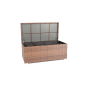 Сундук предназначен для хранения текстильных изделий, водонепроницаем, поэтому можно использовать на улице, не боясь осадков.