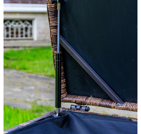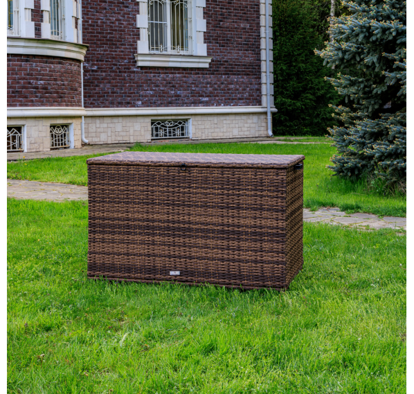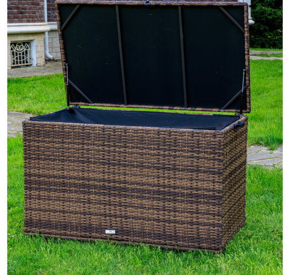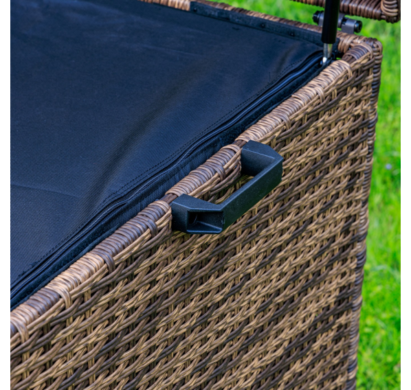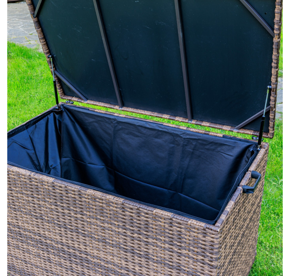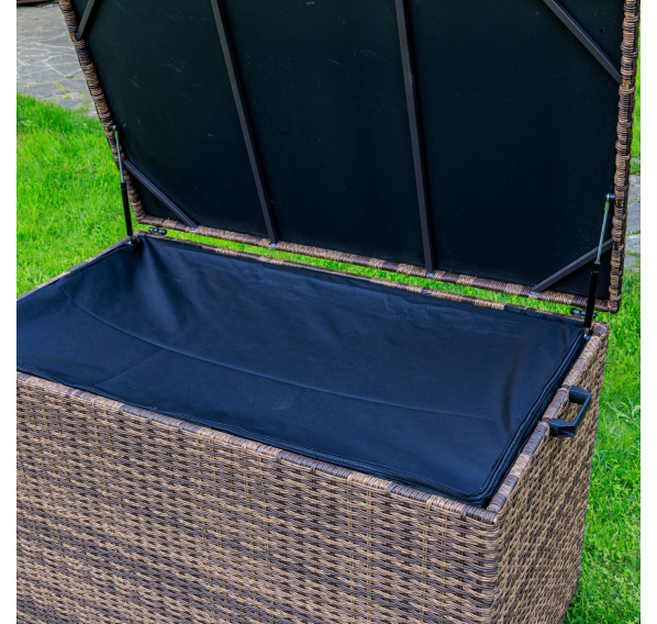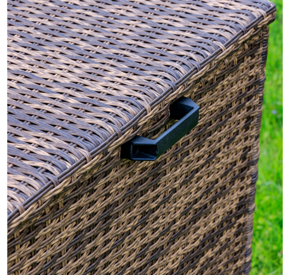 Материалы высокого качества: искусственный ротанг ручного плетения придает сундуку KARL 120 элегантный вид, а стальной каркас и газлифт обеспечивают прочность и надежность.