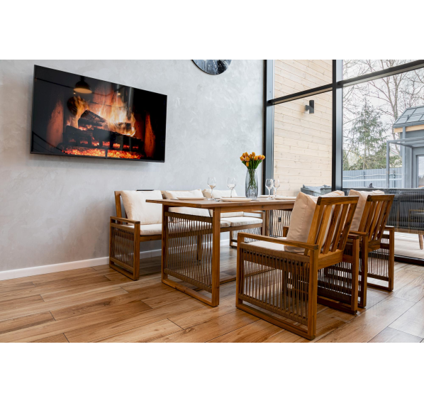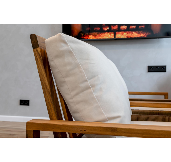 Комплект выполнен из обработанной под тик акации. Этот материал не только отличается премиальным внешним видом, но и обладает надежной защитой от влаги.