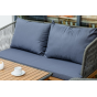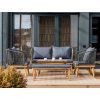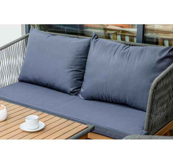 Обивка кресел и дивана выполнена из уличной веревки серого цвета, которая не только придает мебели элегантный вид, но и обладает устойчивостью к различным погодным условиям. Роуп не выцветает под воздействием солнца, что гарантирует сохранение первоначального вида мебели на протяжении долгого времени.