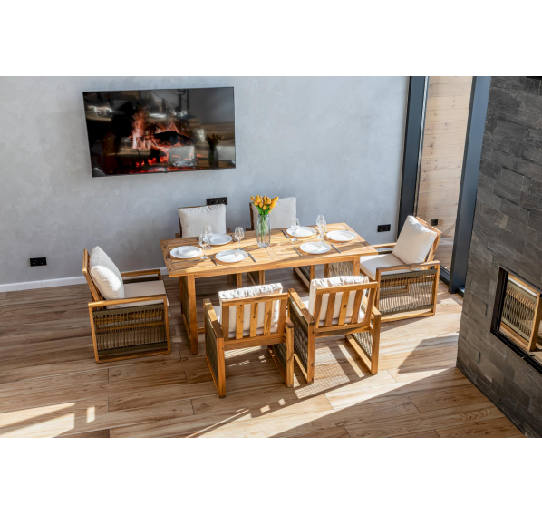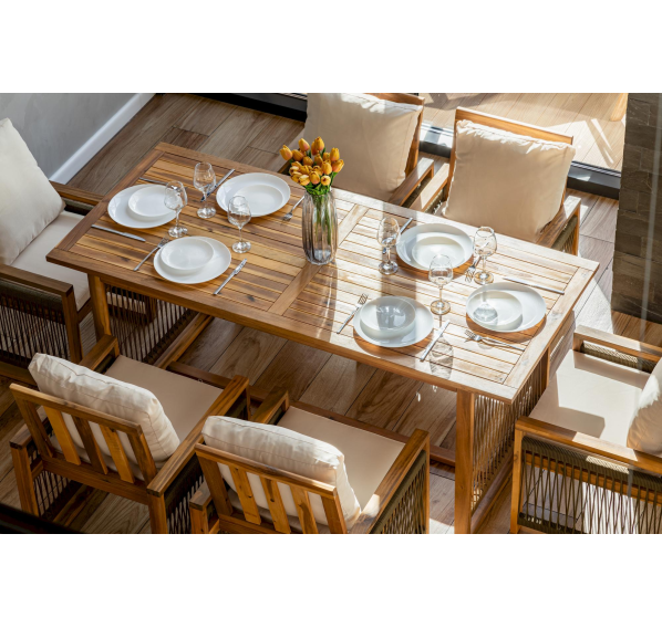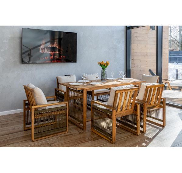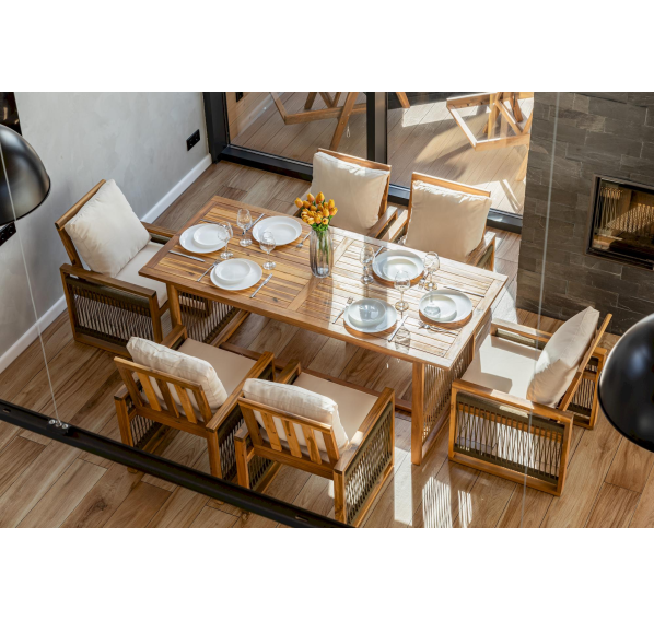 Выберите обеденный комплект из акации GRAND MICHELLE в оливковом цвете и наслаждайтесь комфортом и красотой вашего уличного интерьера!