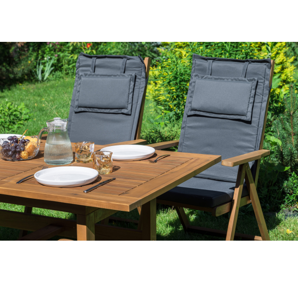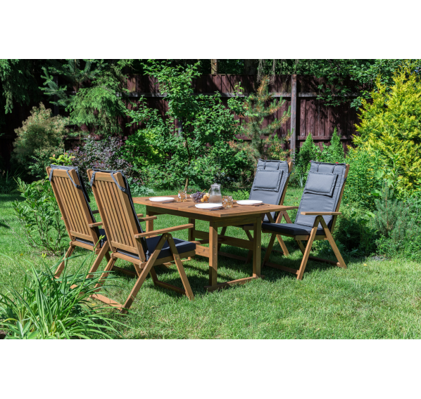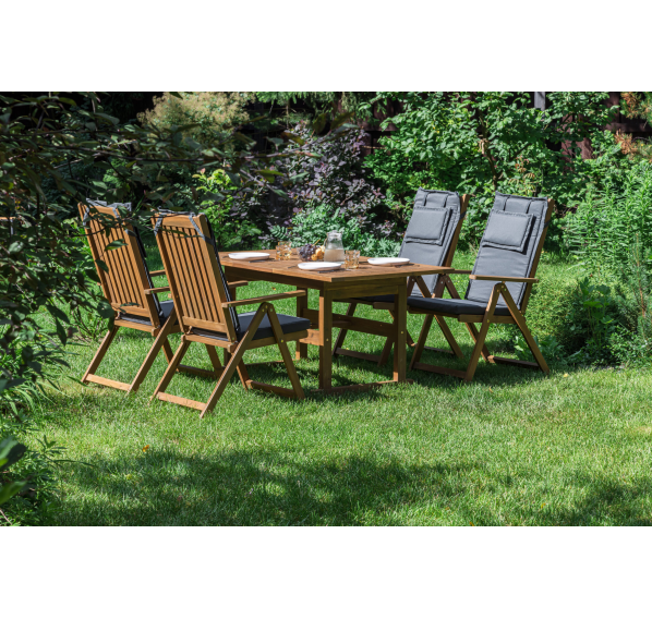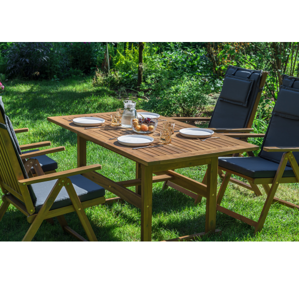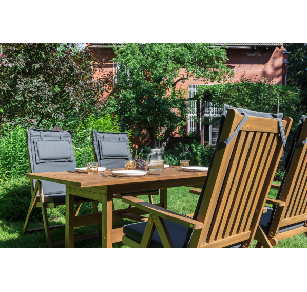Практичный и стильный обеденный комплект KIMBERLY из акации — идеальное решение для Вашего уличного пространства!