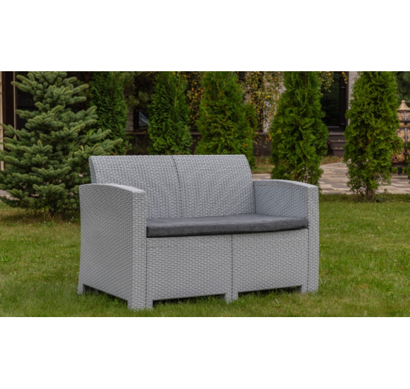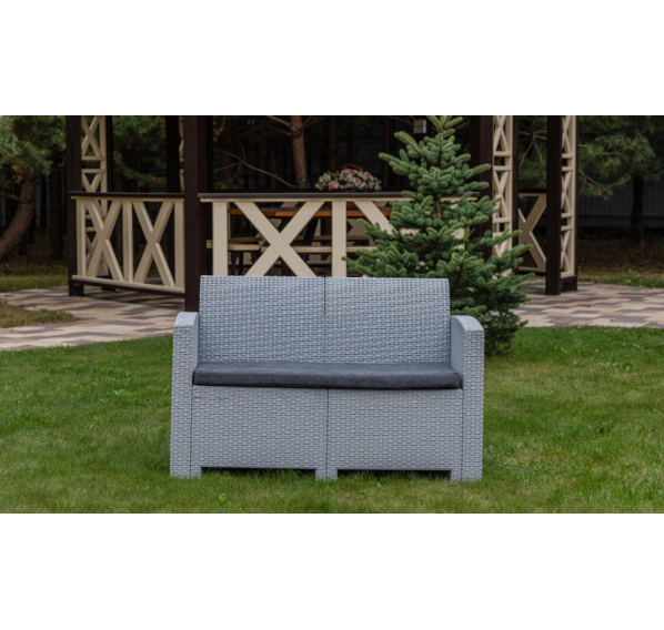 Диван выполнен из окрашенного в массе полипропилена с повышенной прочностью, что обеспечивает ему долговечность и устойчивость к неблагоприятным погодным условиям. Этот материал не только демонстрирует высокие эксплуатационные характеристики, но и легко очищается от загрязнений.