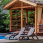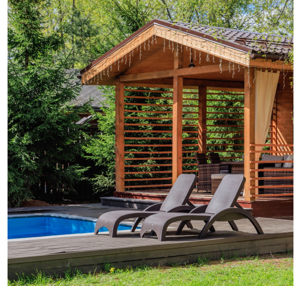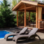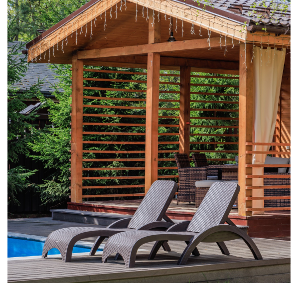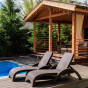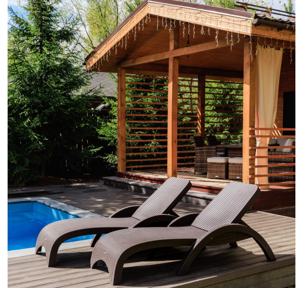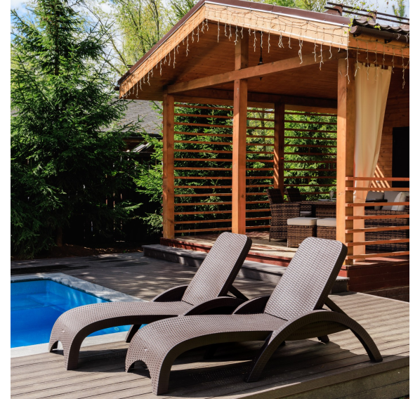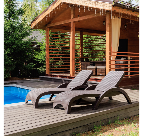 - Цвет шезлонга — коричневый