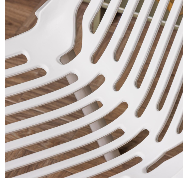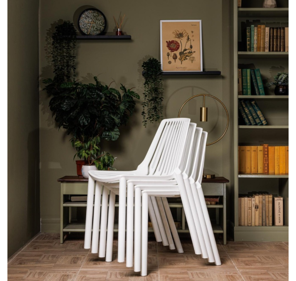 Этот стильный пластиковый стул из окрашенного в массе полипропилена, не только привлекает внимание своим насыщенным белым цветом, но и отличается высокой прочностью и долговечностью.