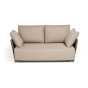 Диван имеет алюминиевый каркас, окрашенный порошковой краской в светло-серый (RAL7035) цвет. Боковины каркаса вручную оплетены роупом - эластичными синтетическими лентами, изготовленными из высокопрочных полиэфирных волокон. Цвет оплетки - серо-коричневый.
