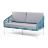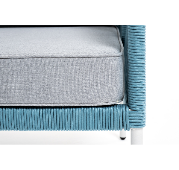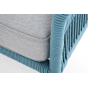Двухместный диван «Канны» плетеный бирюзовым роупом - эластичными синтетическими лентами, выполненными из полиэфирных волокон.