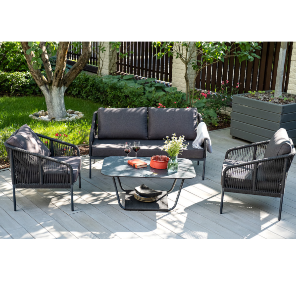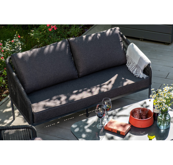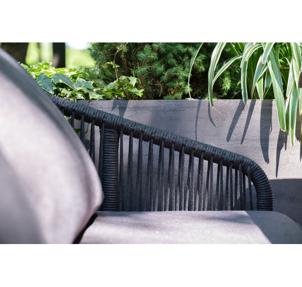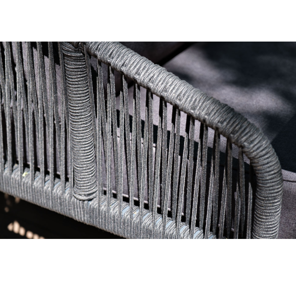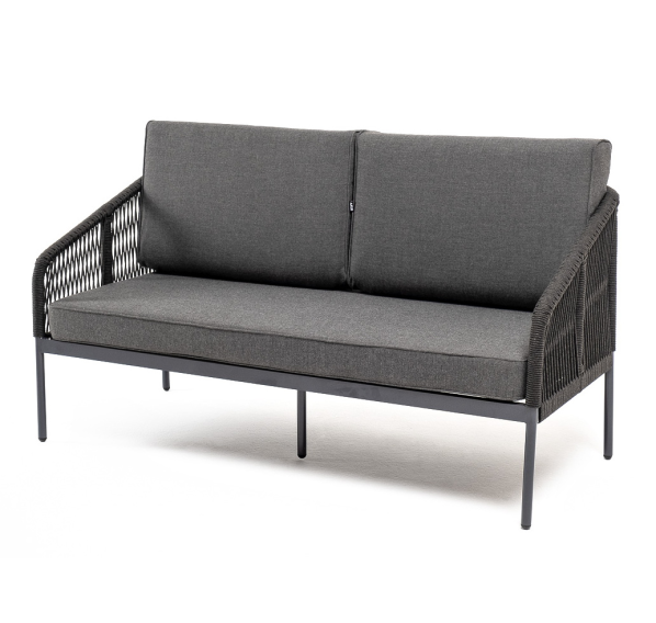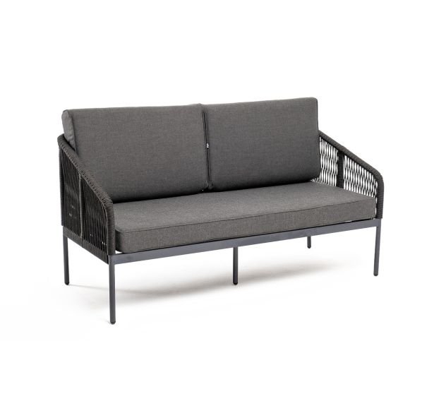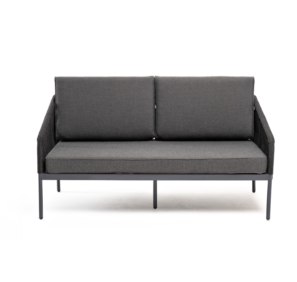 Двухместный плетеный диван «Канны» - это стильный и удобный элемент для отдыха на открытом воздухе или в помещении. Он изготовлен из качественного и прочного материала - роупа темно-серого цвета, обеспечивающий высокую стойкость к износу и долговечность изделия.