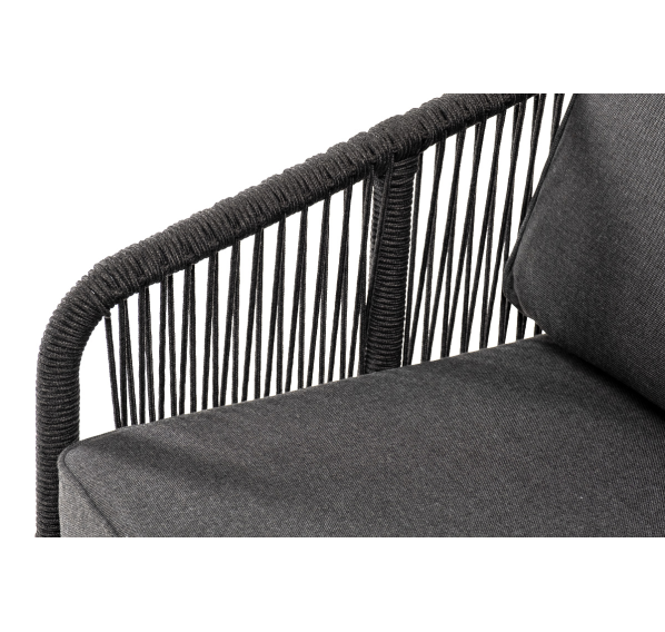 Двухместный диван «Канны» плетеный коричневым роупом - эластичными синтетическими лентами, выполненными из полиэфирных волокон.