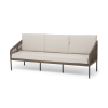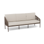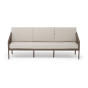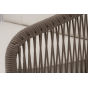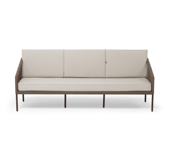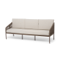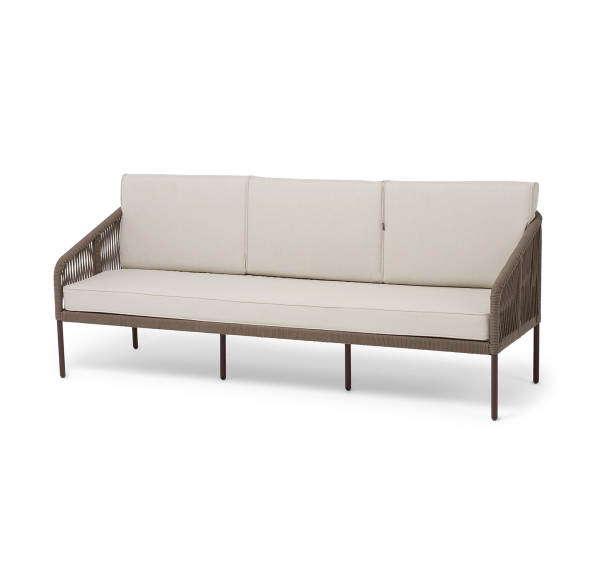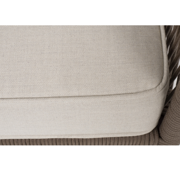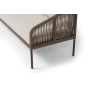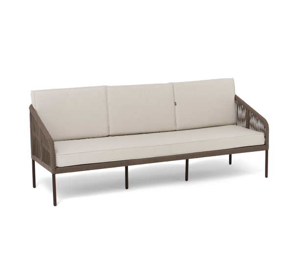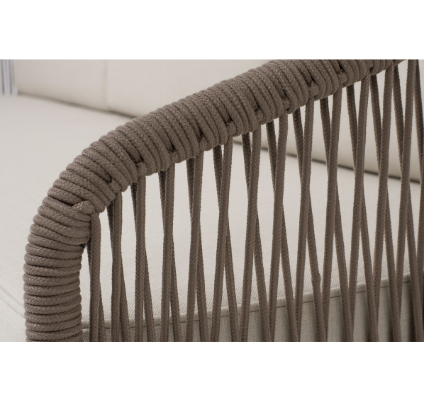 Диван имеет алюминиевый каркас, окрашенный порошковой краской в коричневый (RAL8016) цвет. Боковины каркаса и спинка вручную оплетены роупом - эластичными синтетическими лентами, изготовленными из высокопрочных полиэфирных волокон. Цвет оплетки в тон каркасу - коричневый.