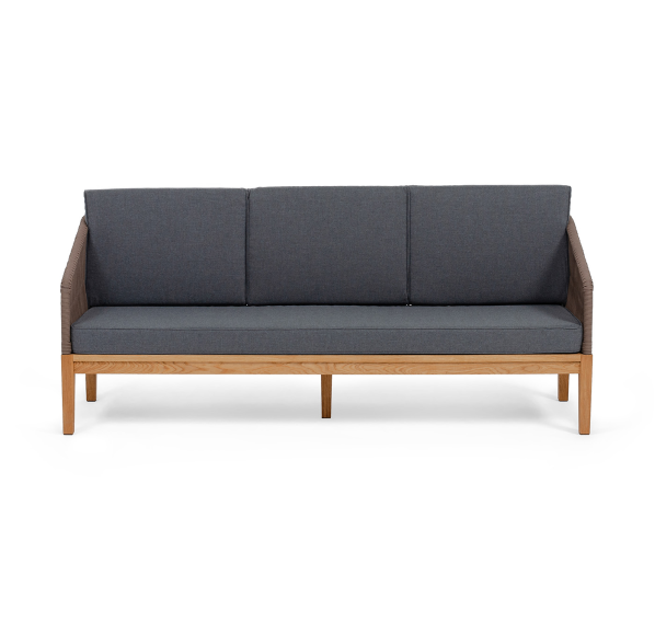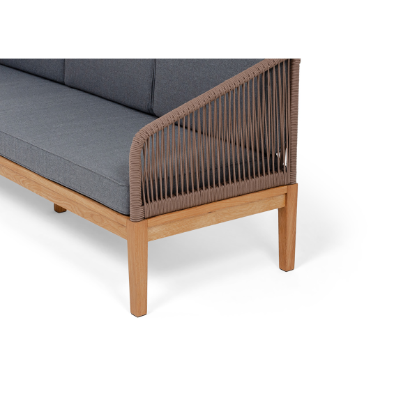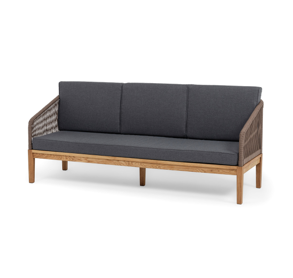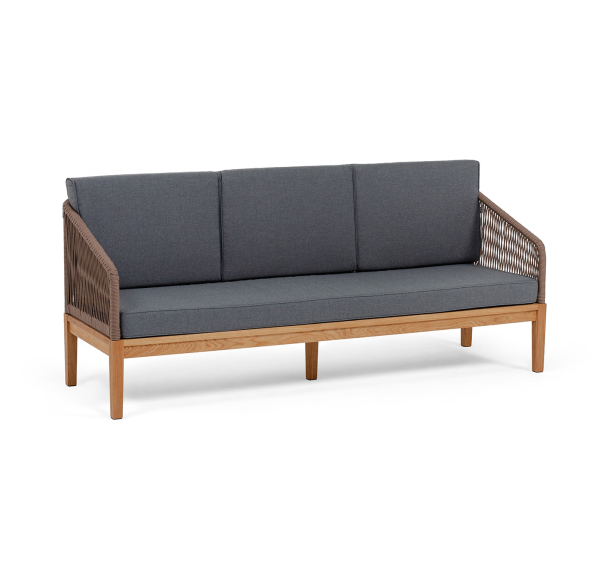 Трехместный диван «Канны» - отличный выбор для создания уютной атмосферы на террасе, в саду или на веранде. Выполнен из круглого роупа (эластичные ленты) в коричневом цвете, который придает ему роскошный вид.