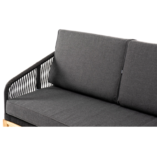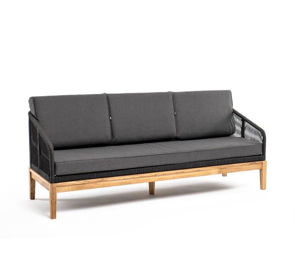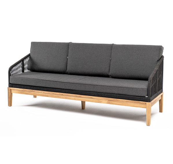 Трехместный диван «Канны» - отличный выбор для создания уютной атмосферы на террасе, в саду или на веранде. Выполнен из круглого роупа (эластичные ленты) в темно-сером цвете, который придает ему роскошный вид.