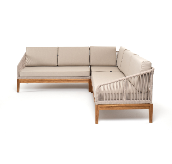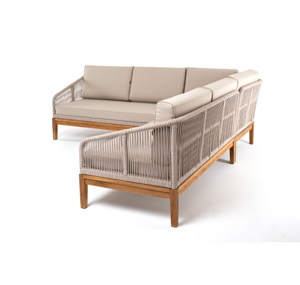 Боковины каркаса вручную оплетены роупом - эластичными синтетическими лентами, изготовленными из высокопрочных полиэфирных волокон. Цвет оплетки - бежевый. Основание дуб.