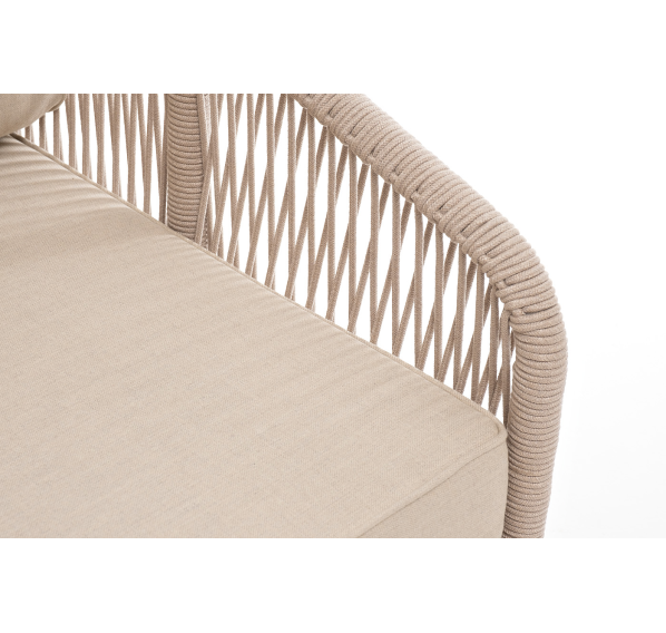 Модуль имеет алюминиевый каркас, окрашенный порошковой краской в белый цвет. Боковины каркаса вручную оплетены роупом - эластичными синтетическими лентами, изготовленными из высокопрочных полиэфирных волокон. Цвет оплетки - бежевый.