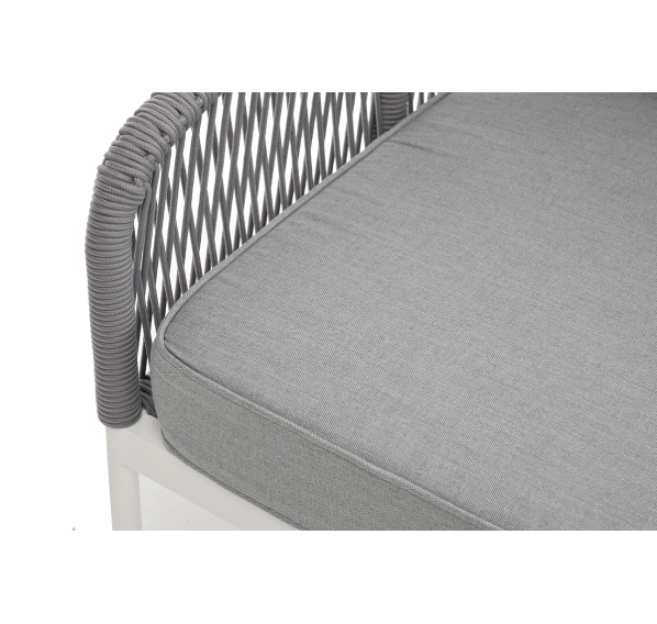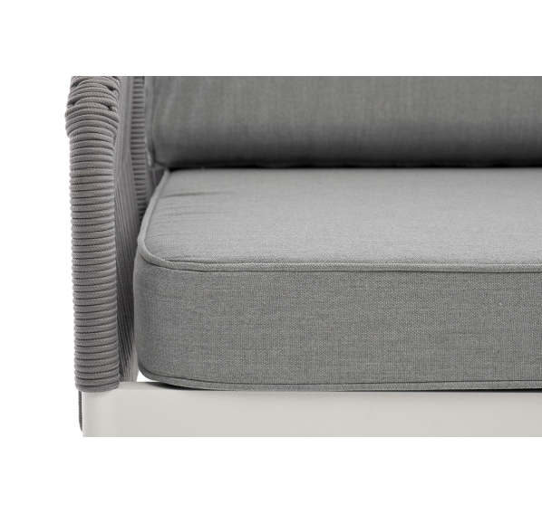 Модуль имеет алюминиевый каркас, окрашенный порошковой краской в белый цвет. Боковины каркаса вручную оплетены роупом - эластичными синтетическими лентами, изготовленными из высокопрочных полиэфирных волокон. Цвет оплетки - светло-серый.
