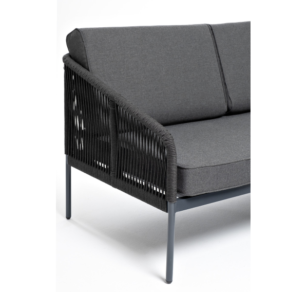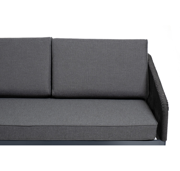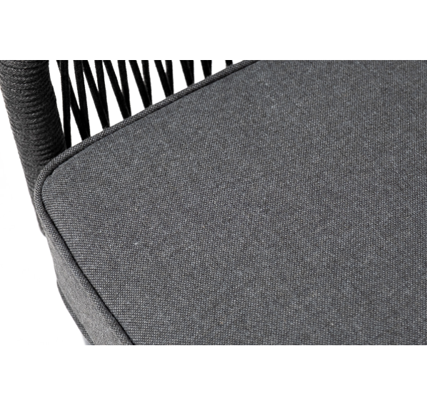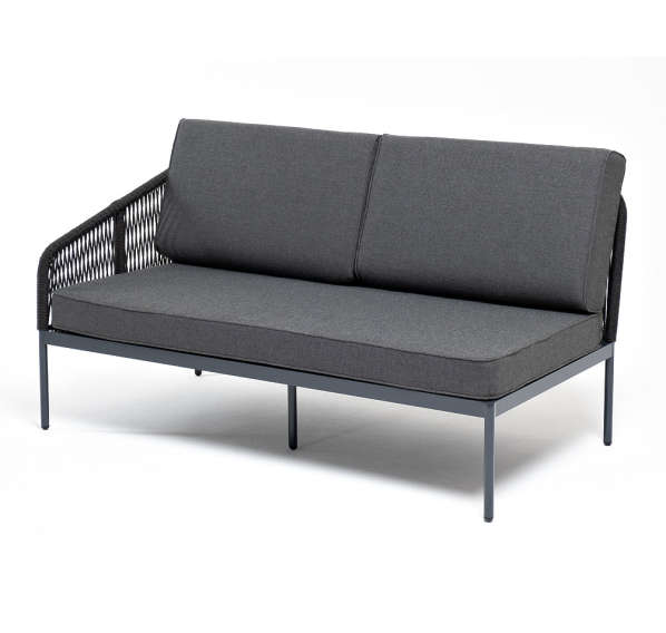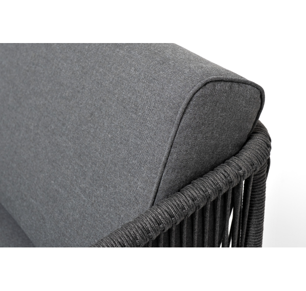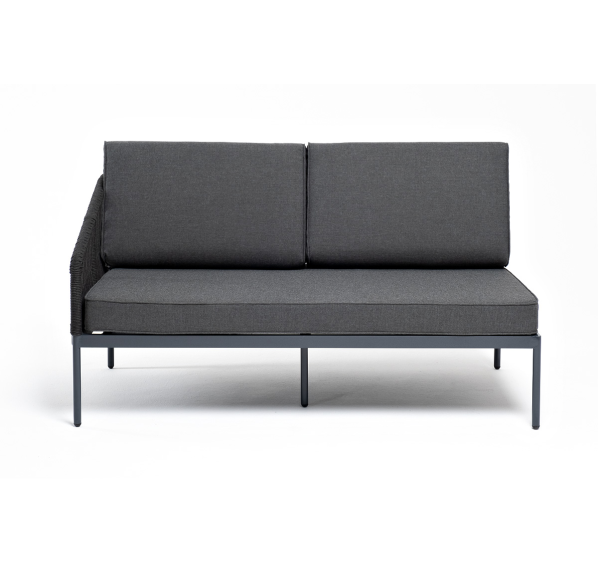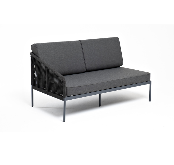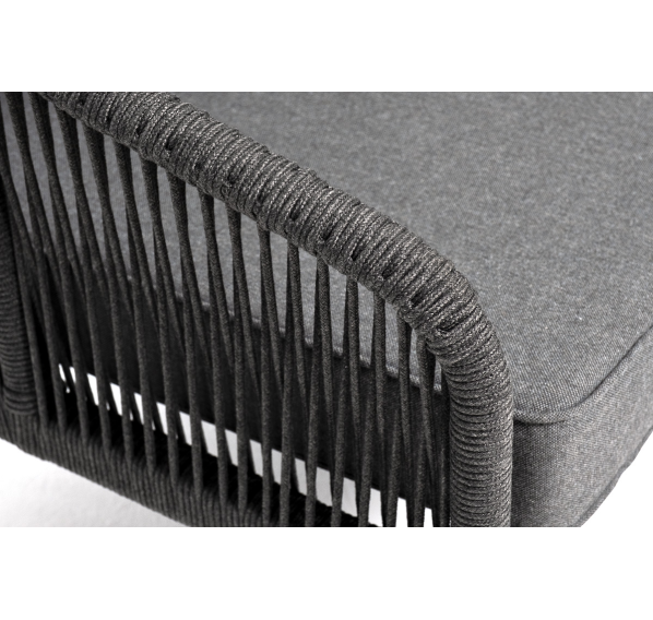 Модуль имеет алюминиевый каркас, окрашенный порошковой краской в темно-серый (RAL7024) цвет. Боковины каркаса вручную оплетены роупом - эластичными синтетическими лентами, изготовленными из высокопрочных полиэфирных волокон. Цвет оплетки - темно-серый.