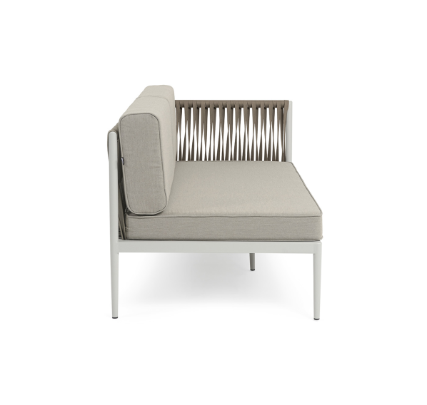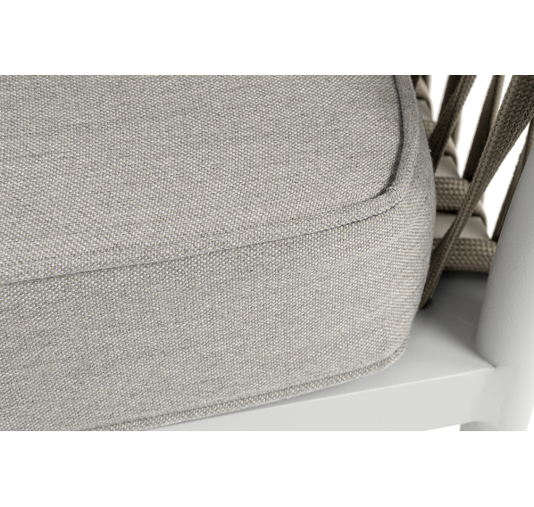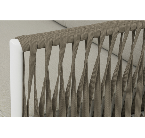 Изготовлен из качественного алюминиевого профиля, окрашенного порошковой краской в светло-серый (RAL7035) цвет. Каркас оплетен плоским роупом, шириной 23 мм, серо-коричневого цвета.
