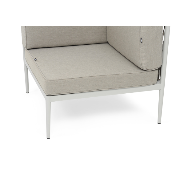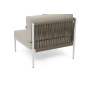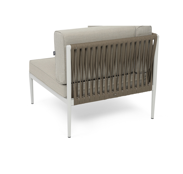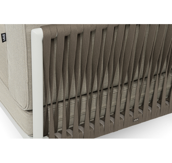 Изготовлен из качественного алюминиевого профиля, окрашенного порошковой краской в светло-серый (RAL7035) цвет. Каркас оплетен плоским роупом, шириной 23 мм, серо-коричневого цвета.
