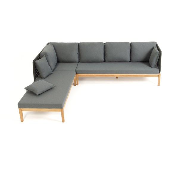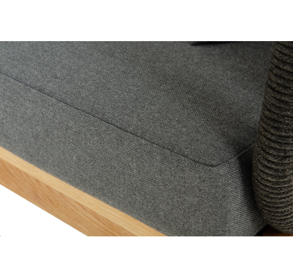 Боковины каркаса вручную оплетены роупом - эластичными синтетическими лентами, изготовленными из высокопрочных полиэфирных волокон. Цвет оплетки - темно-серый. Основание дуб.