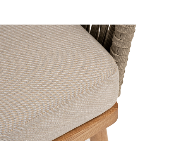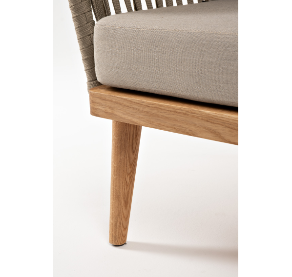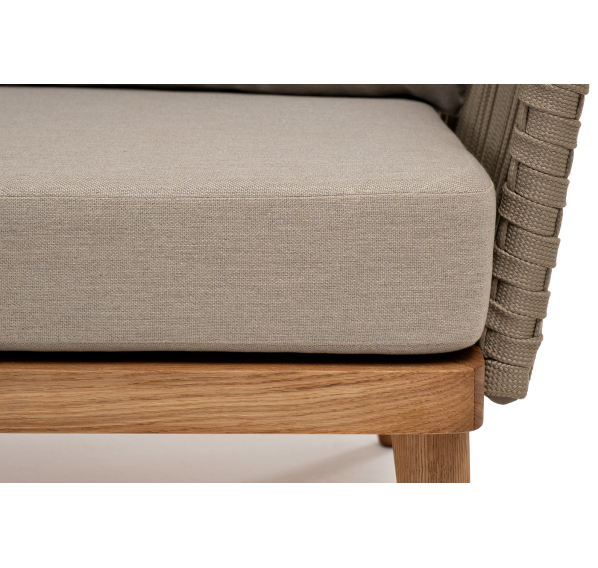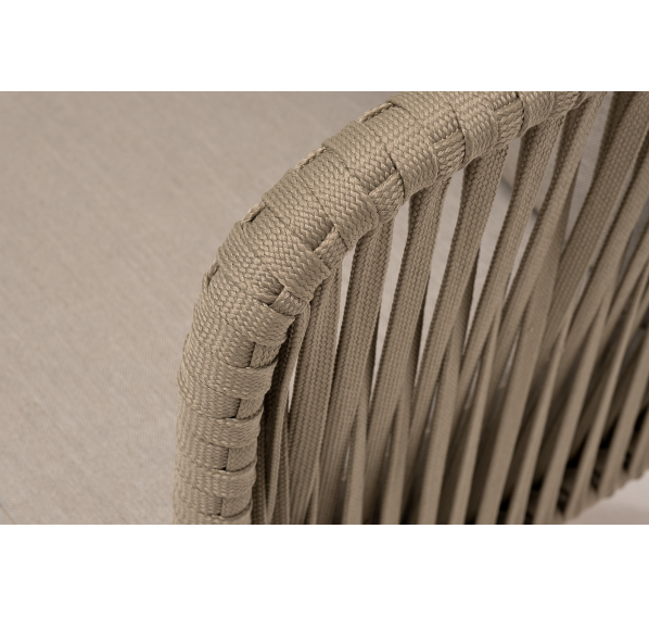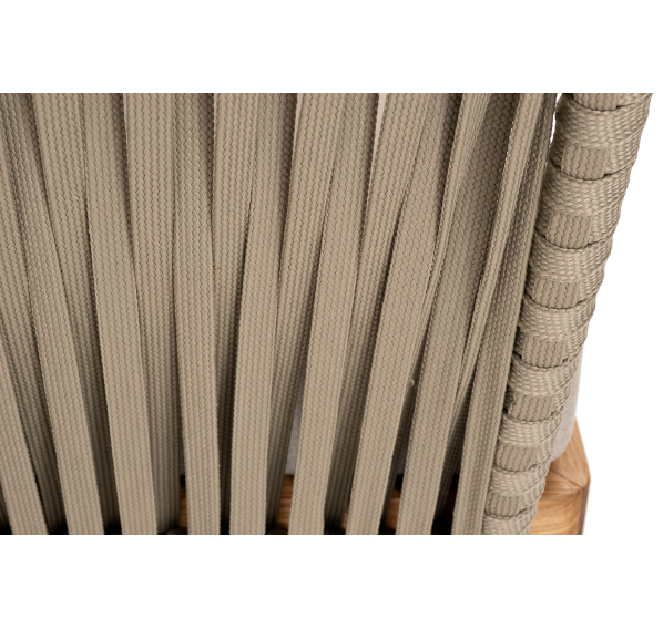 Боковины каркаса и спинка вручную оплетены роупом - эластичными синтетическими лентами, изготовленными из высокопрочных полиэфирных волокон. Цвет оплетки - серо-коричневый. Основание - дуб.