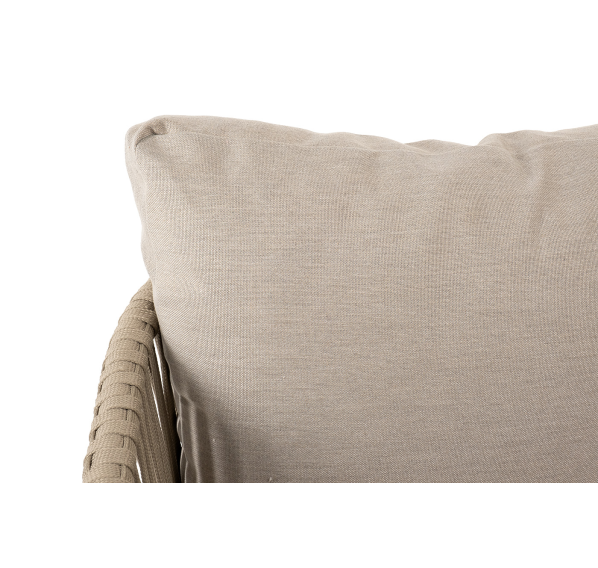 Подушки состоят из наполнителя и съёмных чехлов, которые обработаны влагоотталкивающей пропиткой. Материал - 100% полиэстер, плотностью 300гр/м2. Тип ткани - рогожка.