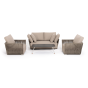 Кресла и диван идут в комплекте с мягкими подушками в чехлах бежевого цвета.