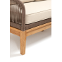 Каркас уличной мебели выполнен из дуба. Его дополняет коричневая оплетка, изготовленная на основе эластичных синтетических лент из полиэфирных волокон высокой прочности.
