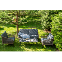 В комплект также входят подушки с влагоотталкивающими съёмными чехлами, цвет аналогичный темно-серый.