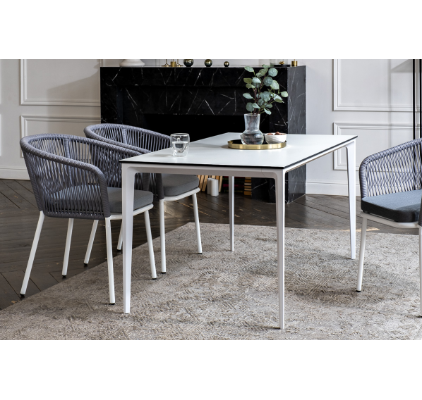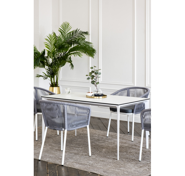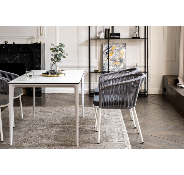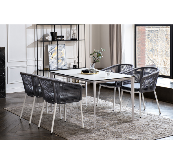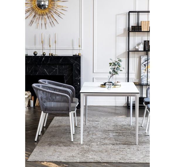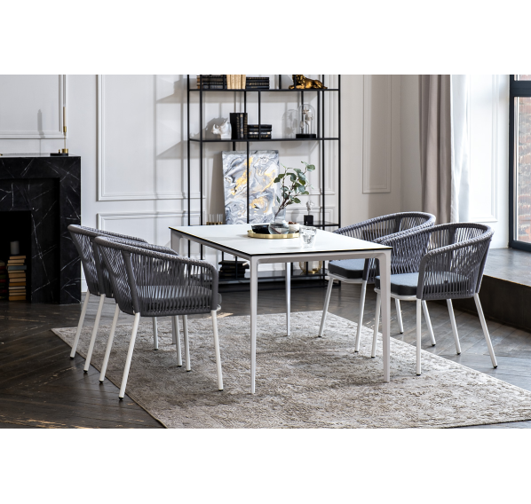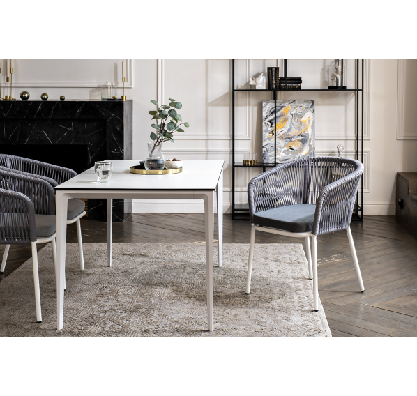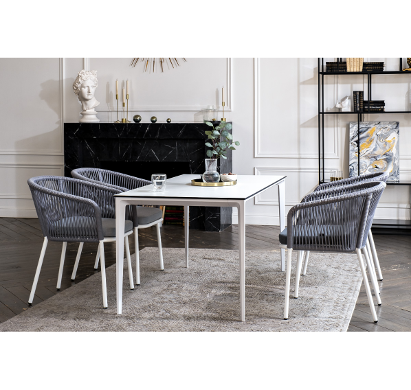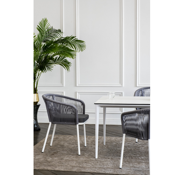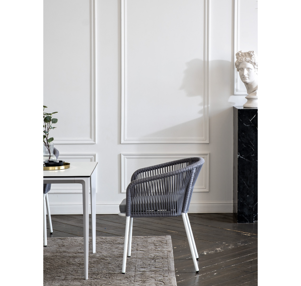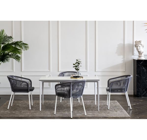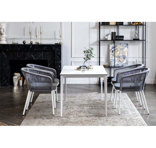 - 4 плетеных стула «Марсель» из роупа, размером - 570×620×775 мм, цвет роупа - светло-серый, каркас - белый.